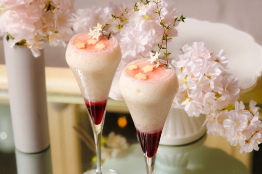 スペシャルドリンク構成:ストロベリーシロップ、さくらシロップ、ミルク、ピーチネクター、カルピス、パッションフルーツシロップ、桜パウダー、桜型のりんご、タイム