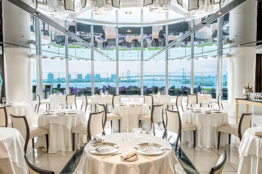 レインボーブリッジビューダイニング&シャンパンバー マンハッタン(6F)自然光が降り注ぎ東京湾を一望するダイニングで、レインボーブリッジや海辺の景色を眺めながらランチ&ティータイムをお過ごしいただけます。