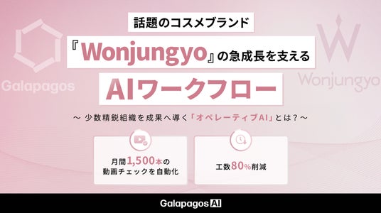 AIトランスフォーメーションで業務改革を支援する株式会社ガラパゴス(本社:東京都千代田区、代表取締役社長:中平健太)は、コスメブランド『Wonjungyo(ウォンジョンヨ)』や『&be(アンドビー)』などを手がける株式会社Rainmakers(以下「Rainmakers」)のAI導入事例をまとめたホワイトペーパー【話題のコスメブランド『Wonjungyo』の急成長を支える、AIワークフロー】を公開いたしました。