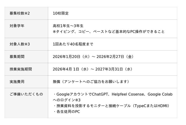 ※1 応募多数の場合、本講座の趣旨を踏まえ、生成AIを学ぶ機会が少ないと推察される学校を優先することがありますので、ご了承ください。