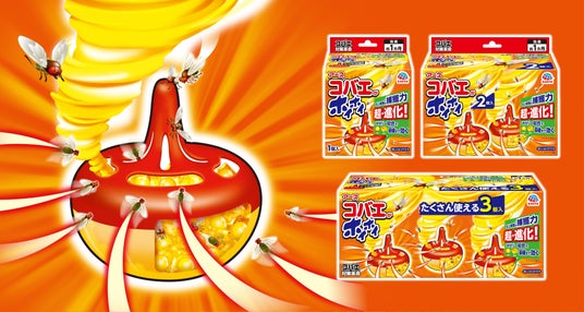 『コバエがホイホイ』は、コバエ捕獲器カテゴリーにおいて圧倒的なシェアを持つブランドです。主に、家庭の台所や生ゴミを入れゴミ箱まわりで発生するショウジョウバエ類、ノミバエ類を対象としています。殺虫成分を噴霧したくない食品の近くでも使用できる設置型のコバエ駆除剤として、多くのお客様にご愛用いただいています。当社は、「生命(いのち)と暮らしに寄り添い、地球との共生を実現する。」という経営理念のもと、人々の健康と快適な生活の実現に真摯に向き合ってまいりました。※1:シリーズ史上