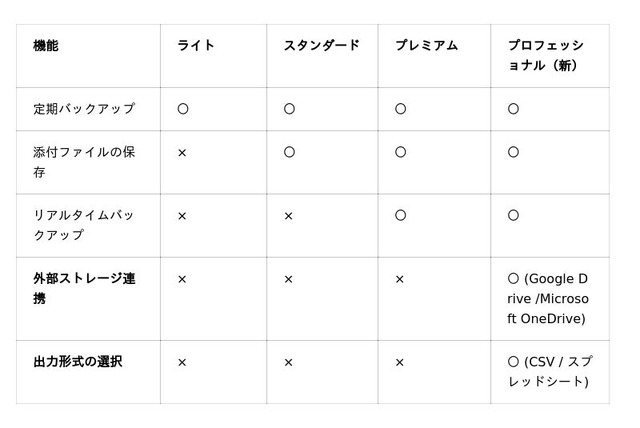 主な機能:プレミアムコースの機能に加え、外部ストレージ(Google Drive /Microsoft OneDrive)への自動エクスポート、出力形式の選択(CSV / Google スプレッドシート)など