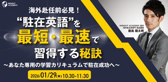 グローバル人材育成・研修業を手掛けるインサイトアカデミー株式会社(本社:東京都港区新橋、代表:金 珍燮)は、無料webセミナー「【海外赴任前必見!】“駐在英語”を最短・最速で習得する秘訣~あなた専用の学習カリキュラムで駐在成功へ~」を開催致します。