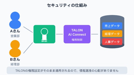TALONの認証基盤と連携し、利用者のアクセス権限に基づいて情報を制御。権限を持っていないデータにはアクセスできません。