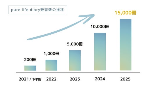 「まじめながんばり屋さんが自分にやさしくなれる手帳」というコンセプトを確立し、『pure life diary 2023年版』を5,000冊販売