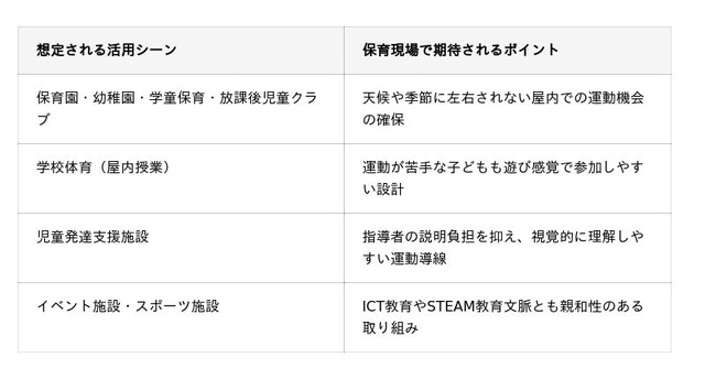 本取り組みは、近年課題として指摘される子どもの運動不足や屋内活動の増加といった背景を踏まえ、