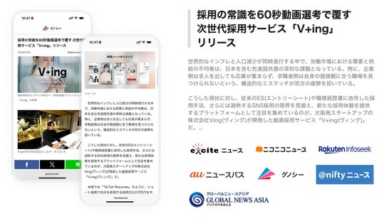 動画採用マッチングプラットフォーム「V+ing(ヴィング)」を運営する株式会社Vingは、