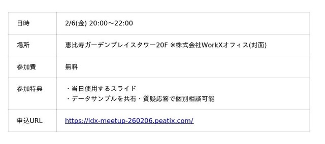 株式会社WorkX(東京都渋谷区、代表取締役:東野智晴、以下「WorkX」)は、2025/2/6(金)に無料MeetUp 兼 勉強会を開催いたします。AI・データに特化したコンサルティング部門であるLeanDataXの現役データサイエンティストが、データ分析の「守破離」について解説します。