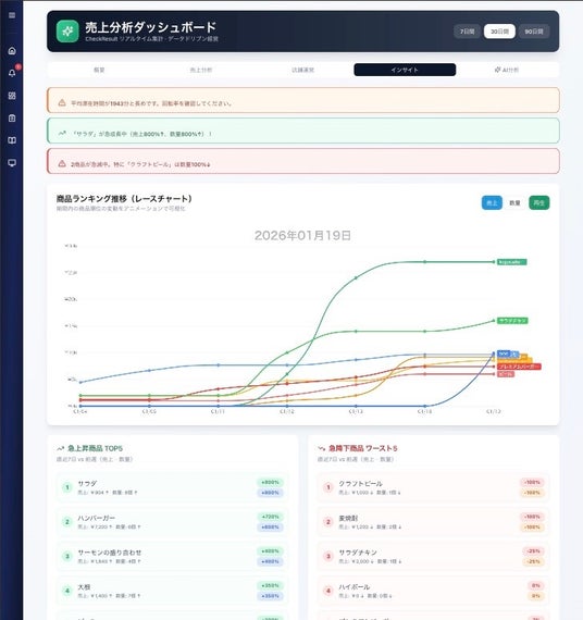 高機能分析ツールに加え、店のPOSデータと直結した対話型AIが搭載。