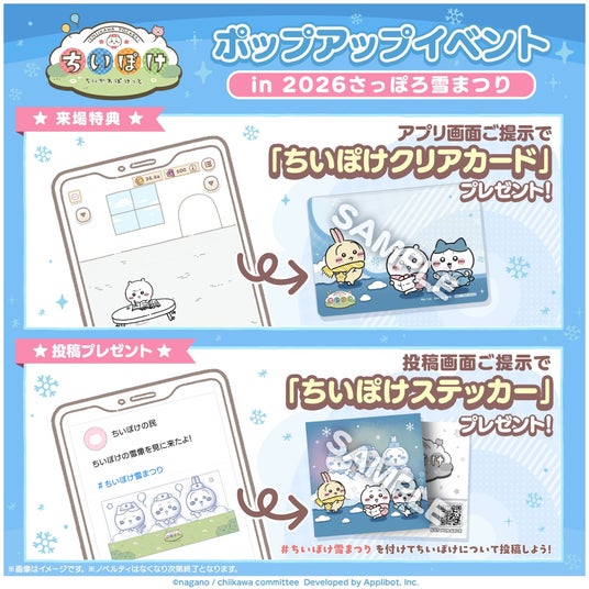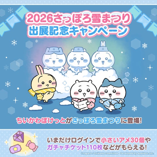 株式会社アプリボット(本社:東京都渋谷区、代表取締役社長:浮田光樹)が企画・制作・開発・運営を行う、「ちいかわ」初のスマホアプリ『ちいかわぽけっと』(以下、『ちいぽけ』)は、2026年2月に行われる「2026さっぽろ雪まつり」への雪像出展について、続報をお知らせいたします。