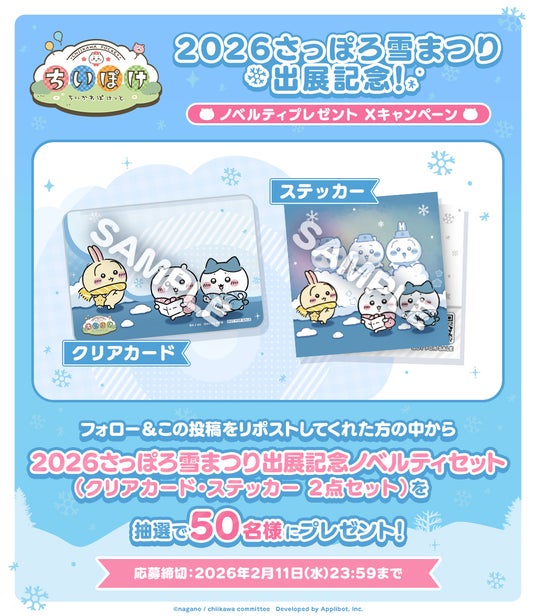 3)『ちいぽけ』公式Xにて、「2026さっぽろ雪まつり出展記念!ノベルティプレゼント Xキャンペーン」を実施!