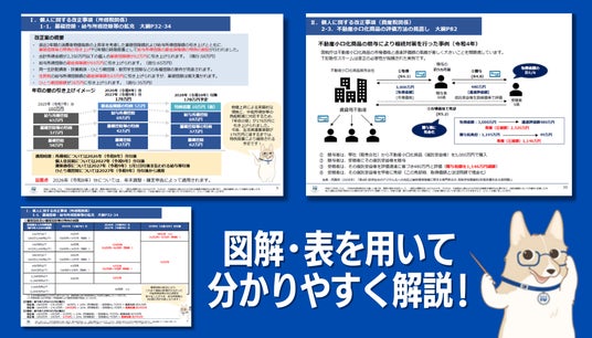 「正確に理解する」ことはもちろん、「正確に伝える」ための補助ツールとしてもご活用いただけます。複雑な「年収の壁」のイメージ図や、貸付用不動産の評価方法・不動産小口化商品の評価方法の見直しの事例を図解を用いてフルカラーで視覚化。資料作成の工数を劇的に削減します。