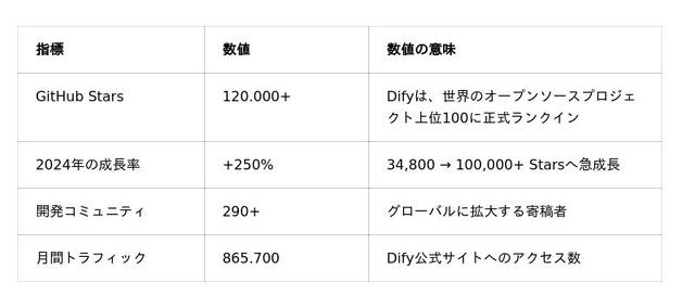 Difyは、プログラミング不要で高度な生成AIアプリケーションを構築できるオープンソースプラットフォームです。世界中の開発者・企業から支持を集め、急成長を続けています。