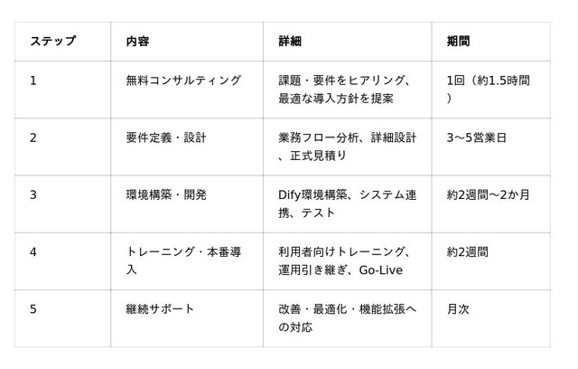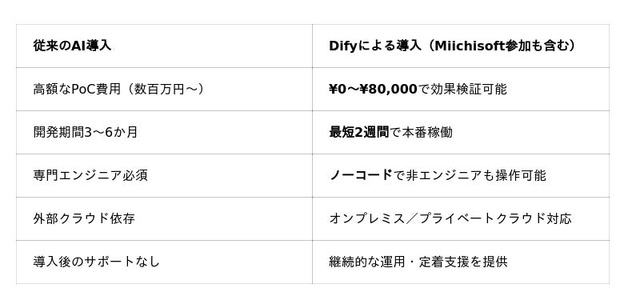 出所:Miichisoftホームページ(https://miichisoft.com/dify-implementation-support/)