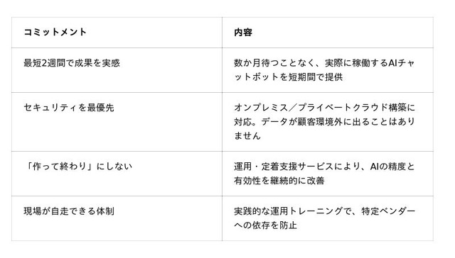 Miichisoftは「導入して終わり」ではなく、「使い続けられる」AI活用を重視しています。