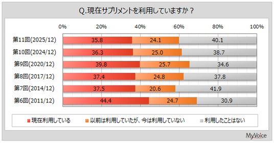 マイボイスコム株式会社(東京都千代田区、代表取締役社長:高井和久)は、11回目となる『サプリメントの利用』に関するインターネット調査を2025年12月1日~7日に実施しました。