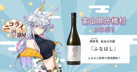 日本酒が大好きなVtuber「ニコライ・ボルコフ」と老舗の酒蔵である満寿泉がコラボをして富山県舟橋村のふるさと納税の返礼品として日本酒「ふなはし」を1月21日(水)より提供しました。返礼品は株式会社あるやうむ(本社:北海道札幌市、代表取締役:畠中博晶、以下「あるやうむ」)が提供する寄付サイトにて寄付を受け付けます。