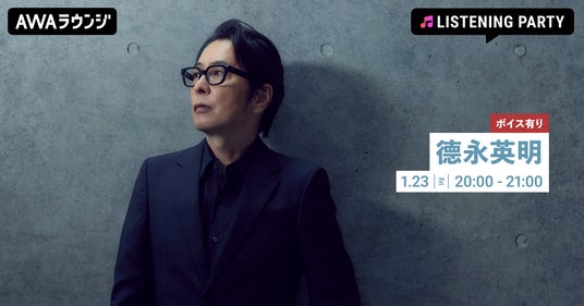 AWA株式会社(本社:東京都港区、代表取締役CEO:冨樫晃己)が運営する、サブスクリプション型(定額制)音楽ストリーミングサービス「AWA(アワ)」は、2026年1月23日(金) 20:00~21:00の1時間に渡り、無料で誰でも参加できるオンライン空間「ラウンジ」で、徳永英明特集のリスニングパーティーを開催いたします。