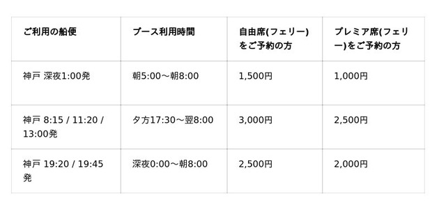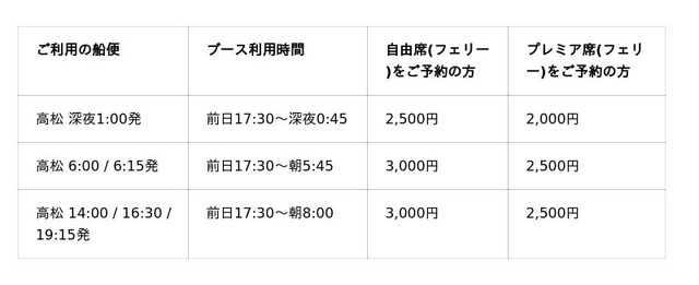 神戸-小豆島-高松を結ぶジャンボフェリー株式会社(本社:神戸市、代表取締役社長:山神正義)は、新サービス、休憩ブース「ちょっとこま」の予約・提供を開始いたします。
