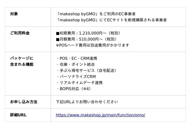 【「店舗&ECクイック連携」サービス概要】(URL: https://www.makeshop.jp/main/function/omo/ )