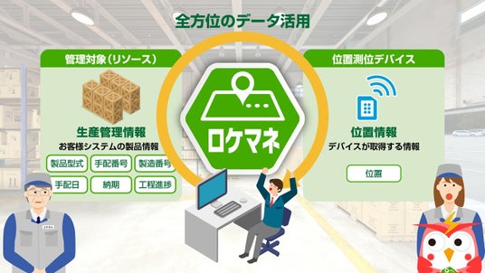 ロケマネは、製造現場の人・モノ・車両などの位置情報をクラウド上で一元管理するSaaS型ソリューションです。GPSや屋内タグを活用し、所在や進捗をリアルタイムで可視化。これにより、探す時間をゼロにし、業務効率化と安全性向上を実現します。さらに、MESやERPとの連携により、工程改善やデータ分析を支援。現場のムダを排除し生産性を高めるスマートファクトリー化を強力に後押しします。