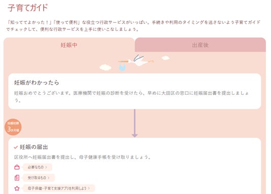 大田区の子育て支援情報を「ユニバーサルメニュー」に基づいて整理し、わかりやすく掲載。