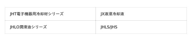JHT電子機器用冷却材シリーズJX液浸冷却液JHLO潤滑油シリーズJHLS/JHS