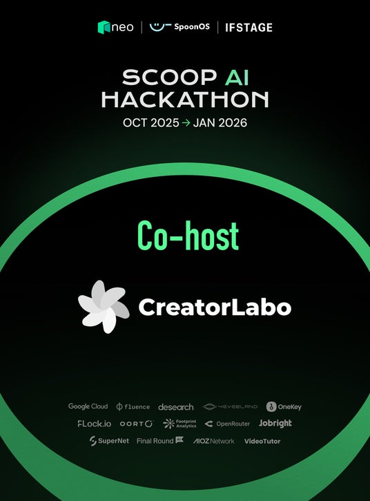 Scoop AI Hackathon Tokyo Bowl は、 Neo × SpoonOS の上で、アイデアや構想を自由に