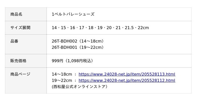 「1ベルトバレーシューズ」は、ご家庭の負担を軽減するお手頃価格999円(1,098円税込)にてご用意しております。さらに、14cm~22cmまで幅広いサイズ展開のため、低学年から高学年まで成長に合わせてぴったりのサイズをお選びいただけます。毎日使うものだからこそ、コストパフォーマンスにもこだわりました。