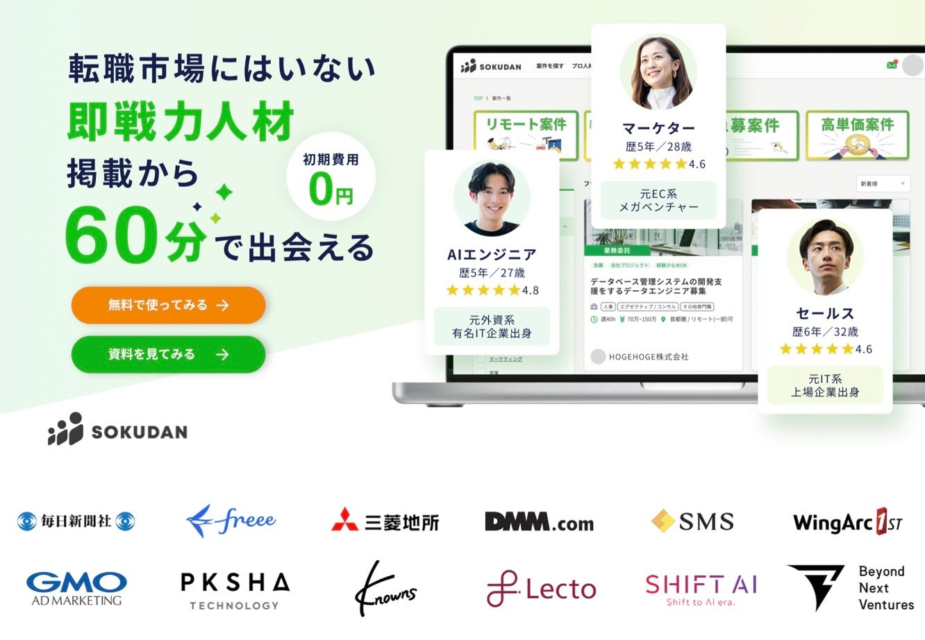 また、スタートアップや上場企業との取引も増え、正社員で即戦力人材を採用したくても「採用するまで何か月も時間を要する」「スカウトメールの反応率が下がってきている」