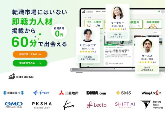 フリーランス・複業・副業の求人マッチングサービス『SOKUDAN(ソクダン)』を運営する、CAMELORS株式会社(本社:東京都渋谷区、代表取締役社長:田根 靖之)がお知らせいたします。