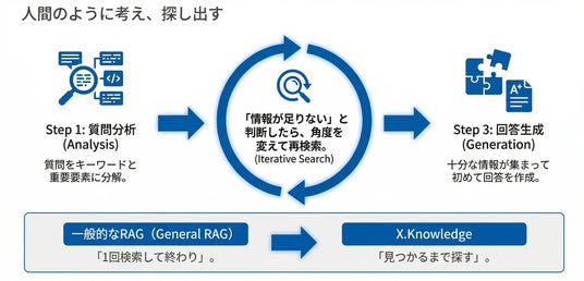 x3dは、こうした課題を解決するため、業務で「使える」「信頼できる」回答を返すAI基盤として「X.Knowledge」を提供します。