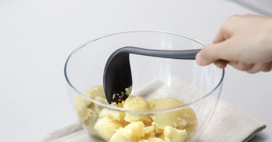 従来品の「穴に食材が詰まって洗いにくい」「つぶすのに力がいる・時間がかかる」などの不満点を丁寧に解消するアイテムとして開発しました。ポテトサラダ、卵サンド、ディップ、離乳食など様々な料理のマッシュだけでなく、ハンバーグなどひき肉をこねる作業にもご活用いただけます。