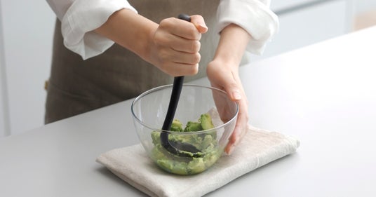 本製品は、先端の突起で食材をあらかじめ割ることで、つぶす際の手間を軽減。スプーン部分裏面の凸凹が滑りを抑え、安定してつぶすことができます。