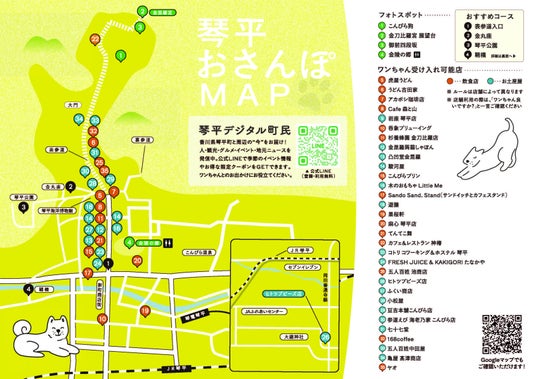 ■ 犬と“歩ける町”を体感できる3日間琴平町では現在、参道を中心とした徒歩圏内にわんこ歓迎店舗が約35店舗集積しています。これほど密集したエリアに犬連れ歓迎の店舗が密集する事例は、国内でも稀有、有数のドッグフレンドリーエリアと言えます。