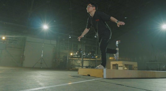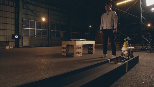 “脚立”が25mを爆走する! “キックスケーター“が自立して綱渡り!