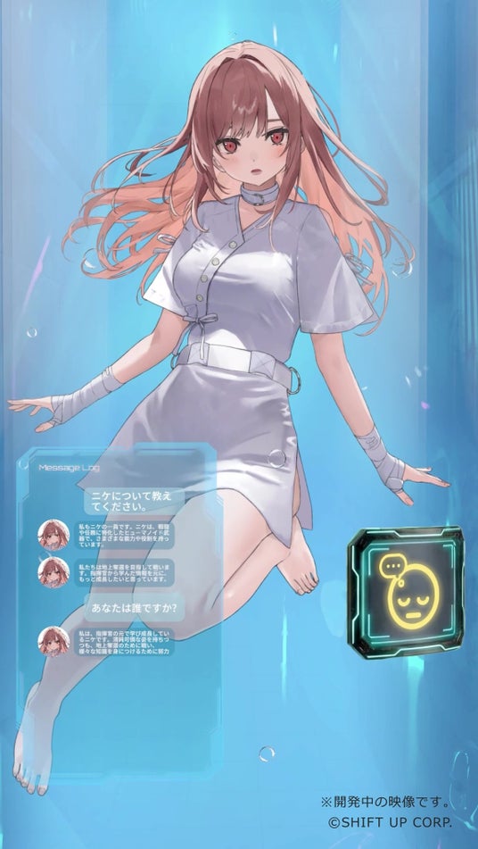 『勝利の女神:NIKKE』に登場する少女型ヒューマノイドキャラクターの「ニケ」をAIキャラクター化し、来場者の呼びかけに応じて自然な反応を返す開発中の対話コンテンツです。