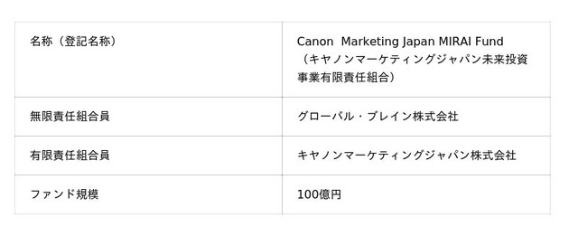 ■Canon Marketing Japan MIRAI Fund概要