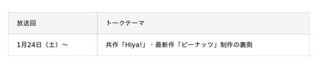 番組内では、「Hiya!」制作の舞台裏や有華さんが日々の中で大切にしているスローガン、さらに最新曲「ピーナッツ」についても掘り下げていきます。