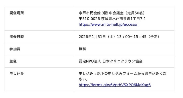 【主催団体】 認定NPO法人 日本クリニクラウン協会