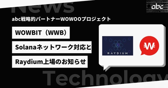 abc株式会社(本社:東京都港区、代表取締役:松田 元、証券コード:8783、以下「当社」)は、当社が戦略的パートナーとして参画しているWeb3プロジェクト「WOWOO」(公式サイト:https://wowoonet.com/)において、同プロジェクトのネイティブトークンである「WOWBIT(WWB)」(以下「WWB」)に関し、以下2点の重要なマイルストーンを達成いたしましたことをお知らせいたします。
