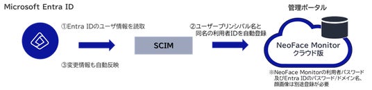 新バージョンでは、Microsoft Entra IDで管理している利用者情報をNeoFace Monitor クラウド版へ自動的に登録可能です。また、Microsoft Entra IDの情報に更新/削除があった際は、NeoFace Monitor クラウド版の利用者情報にも自動で反映を行うため、管理の手間を大幅に削減できます。Microsoft Entra IDとの連携を強化し、お客さまのIT管理をより効率的かつ安全にサポートします。