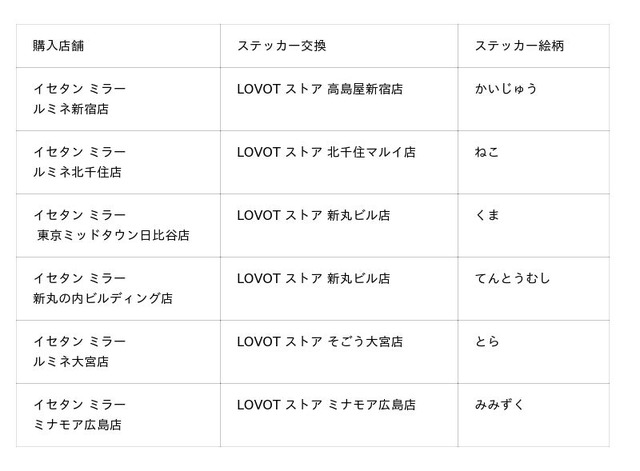 さらに、対象のイセタン ミラー店舗にて税込3,300円以上お買い上げいただいたレシートを、指定のLOVOTストアへお持ちいただいた方に、特製ステッカーをプレゼントいたします。ステッカーはイセタン ミラー店舗ごとに異なり、店頭に登場する『LOVOT』を描いたオリジナルデザインです。