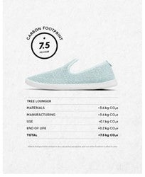 カーボンフットプリントとは、製品を作るために排出されたkg CO2eのこと。様々な温室効果ガスの排出量を、CO2の排出量に換算したものです。「Allbirds」では2020年4月より、全製品においてカーボンフットプリントを表示。製造過程における排出量ゼロを目指すと共に、食品のカロリー表示のように、「地球のためにCO2e排出量を知る」が当たり前の世の中をつくります。