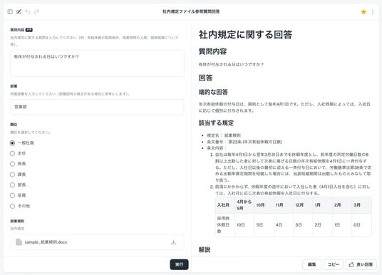 1.最新情報を常に自動反映、参照先ファイルの内容変更に伴う業務AIアプリの手直しが不要に