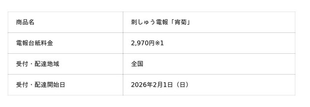 ※1 別途、電報(メッセージ)料等が必要です。詳細は以下URLにてご確認ください。