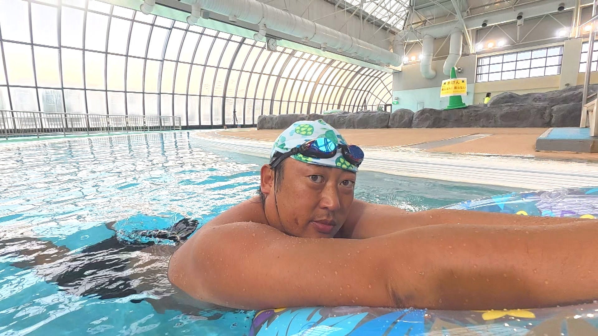 全国各地の市民プールで遊泳し、消費したカロリーを回収すべく