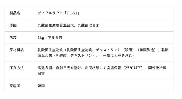 韓国の発酵食品から得られたグルテン分解乳酸菌(生菌)と、その乳酸菌が産生する代謝物を含む食品用粉末原料。サプリメントや健康食品向けで、カプセルや顆粒、打錠など各種剤型への応用が可能。