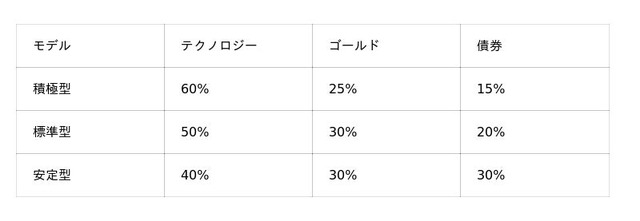 これによりゴールド・債券ファンドでポートフォリオで安定の土台を築き、テクノロジーファンドにより成長を促すリバランス戦略を、ほとんどコストをかけずに実践できます。