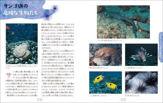 本書では、著者が訪れた世界のサンゴ礁や、そこに棲む海の生物たちの姿を、